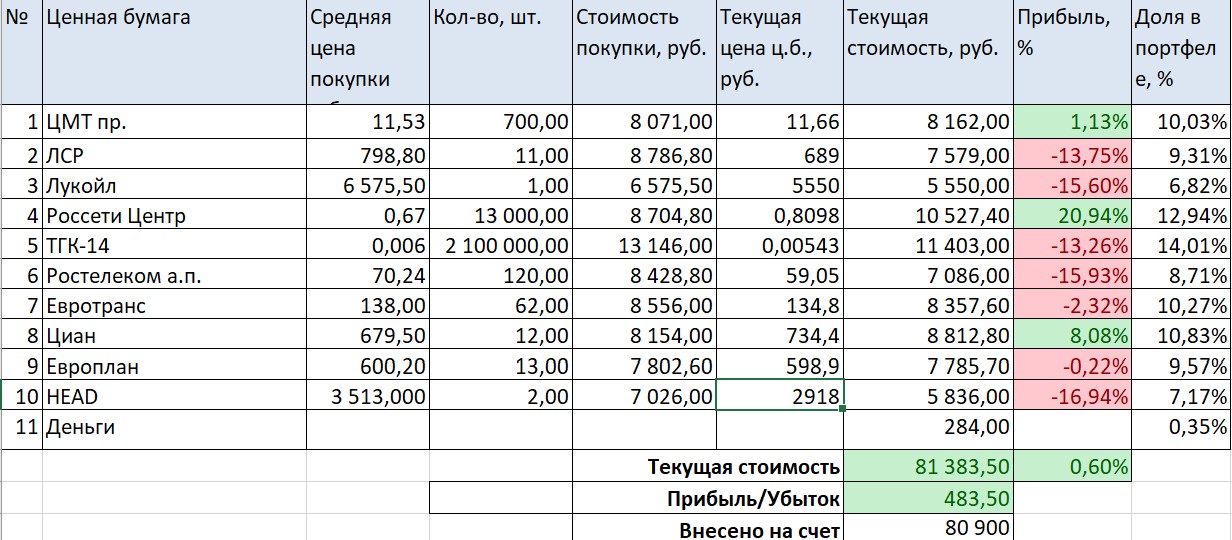 Портфелю скоро будет 9 мес. Продолжаю создавать пенсионный портфель черепашьим шагом. Курс доллара на сегодня — ок. 77,89 руб. Вношу на счет 7800 руб.